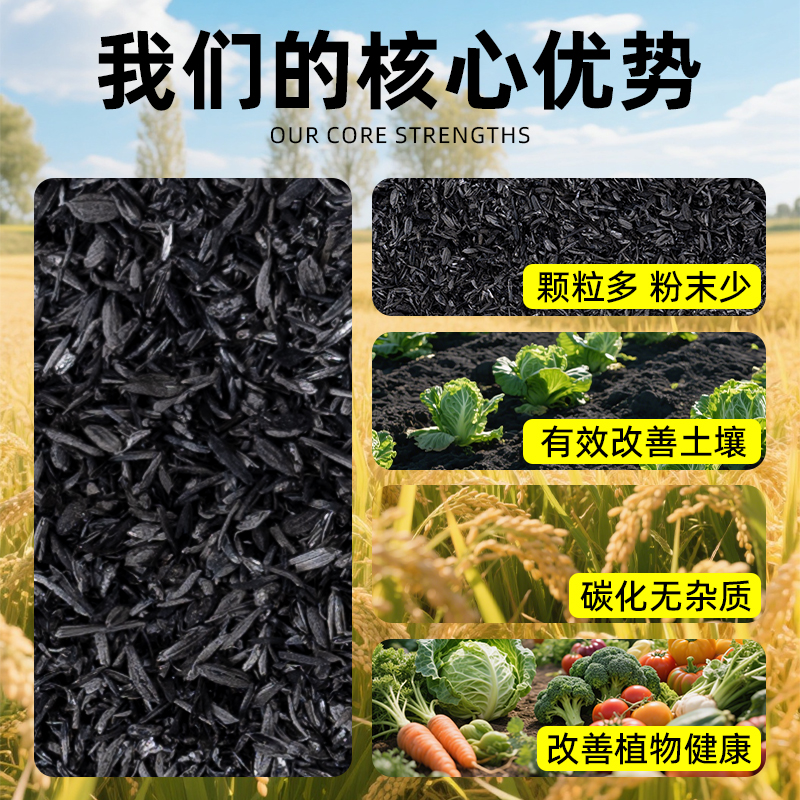 稻壳炭种菜有机肥料腐熟谷壳碳颗粒纯草木灰钾肥发酵养花营养土壤