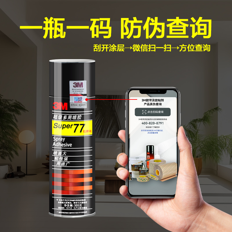 3M喷胶强力胶77喷雾型高粘重复粘贴墙面大面积手工diy相册织物泡棉贴纸剪纸汽车顶棚喷胶胶水3m67喷胶305g