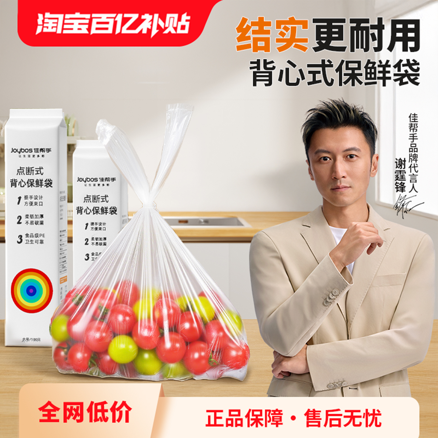佳帮手保鲜袋食品级家用一次性背心式手提加厚冰箱专用密封塑料袋