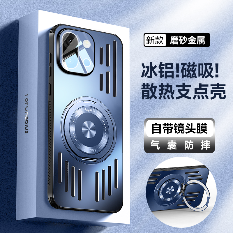 一加13T冰铝金属镂空散热磁吸支架新款超薄手机壳适用OnePlus13T高级感创意时尚潮牌商务男女全包防摔保护套