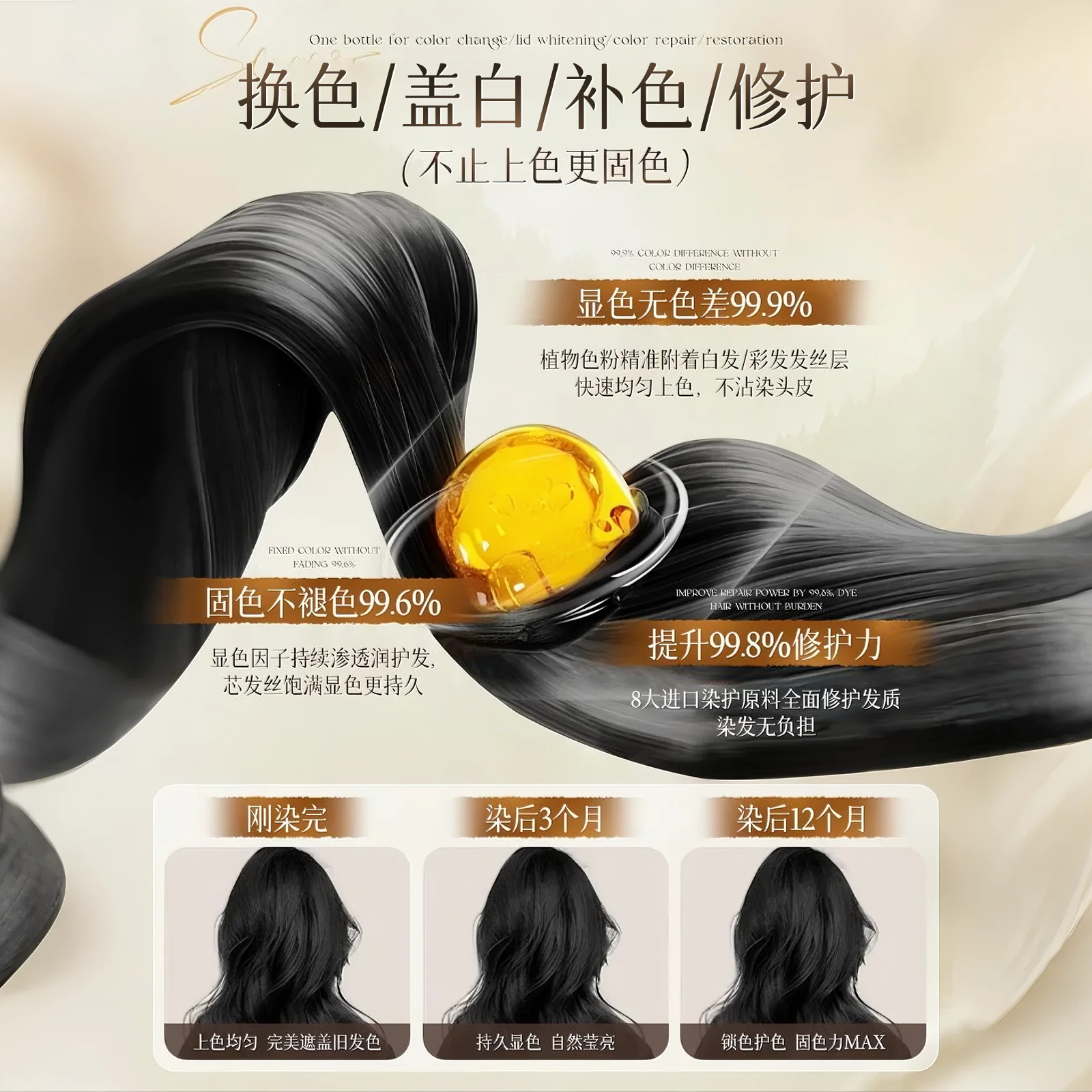 【李宏毅同款】H5染发膏榛果灰棕冷棕色染发剂纯植物黑茶色在家染