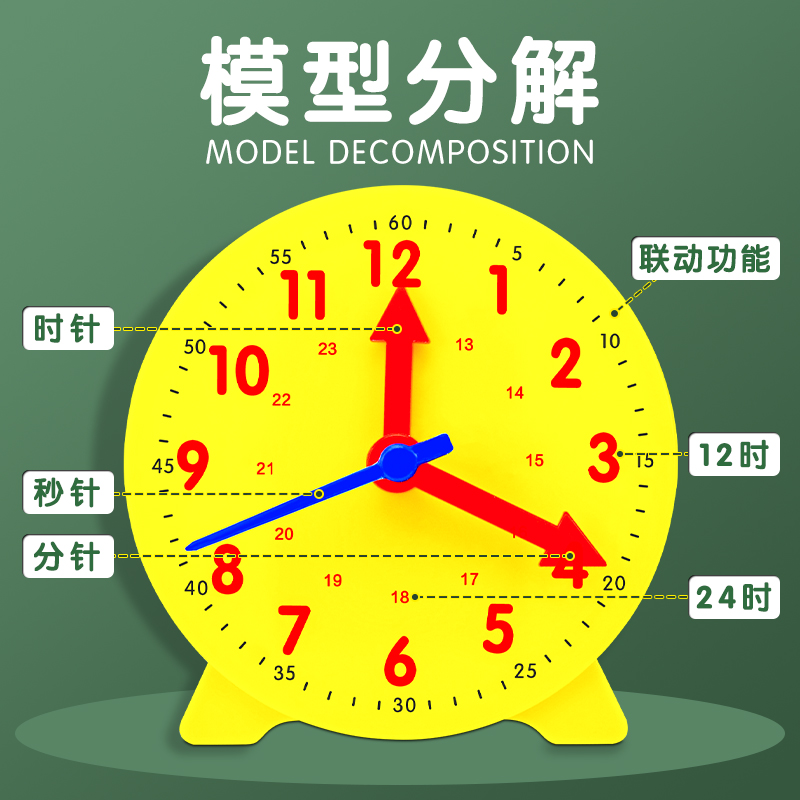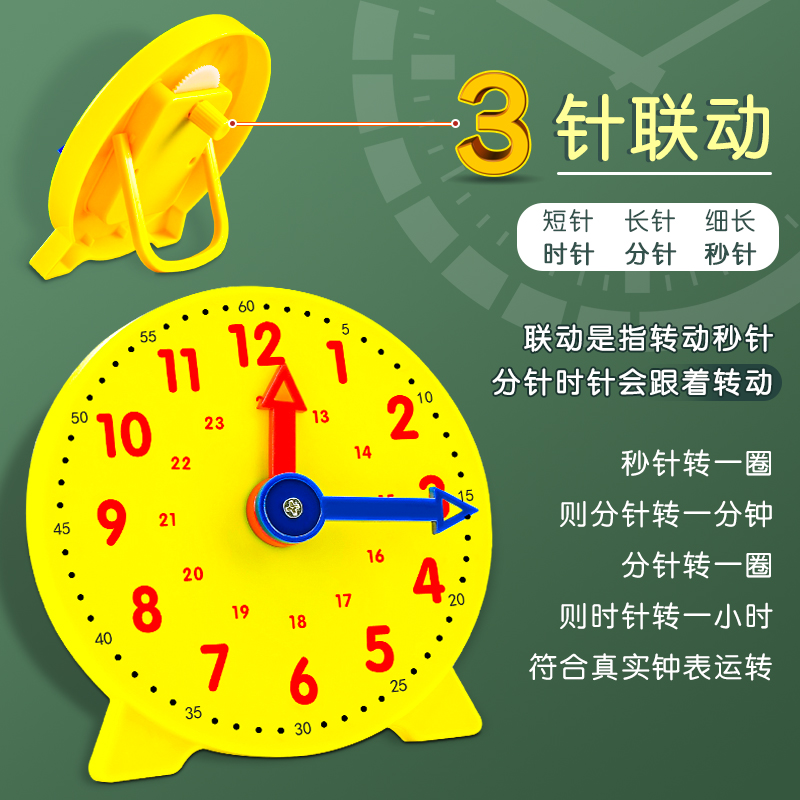 钟表儿童小学教具钟表模型小学生教具三针/两针联动钟表小学一二年级12小时24时认识时间学习器数学钟面学具