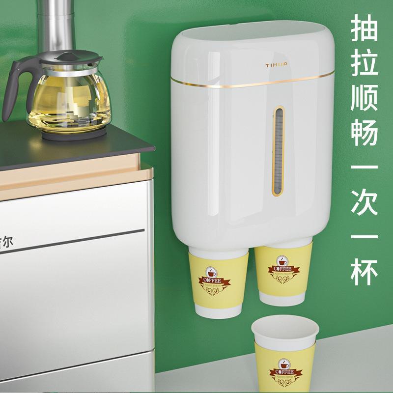 一次性杯子挂架双筒取杯器纸杯架水杯挂壁式置物创意收纳家用架子