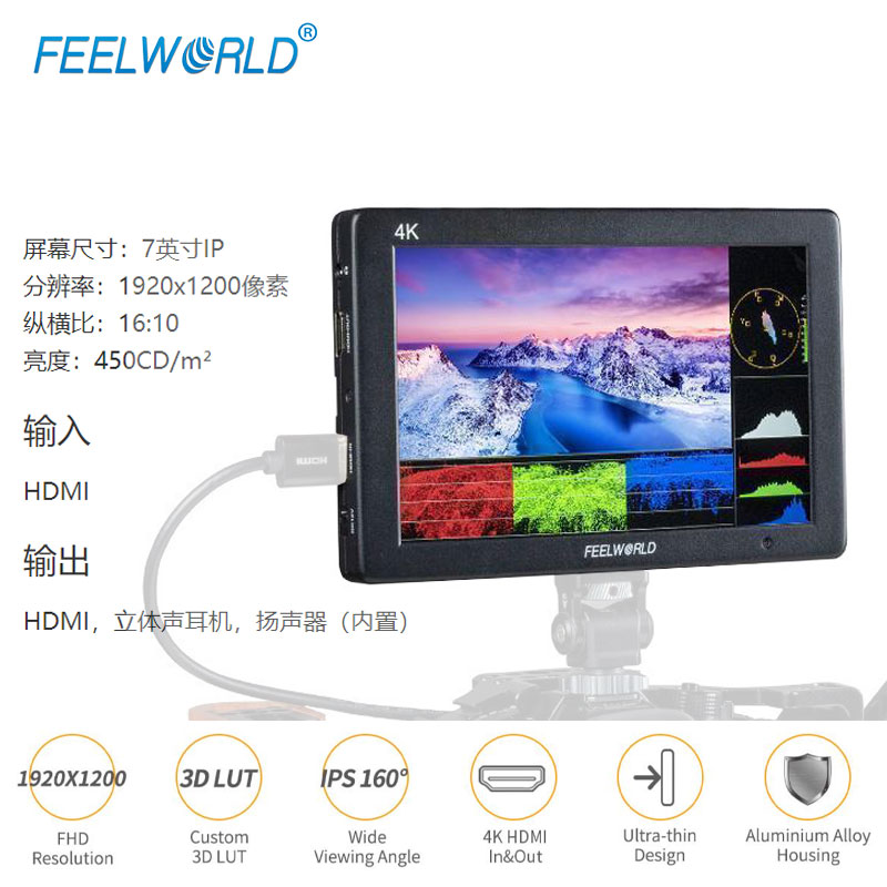 富威德(FEELWORLD)T7 PLUS 3D LUT在相机现场监视器 带有4K HDMI输入 输出IPS 1920x1200坚固的铝制外壳
