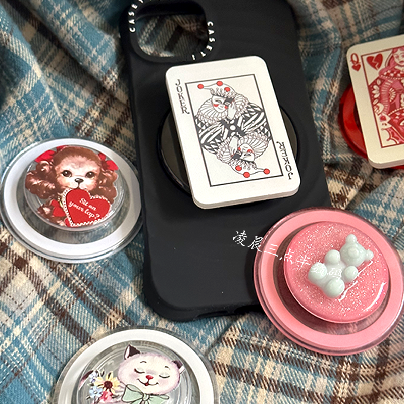 泡泡骚小熊硬糖青提味手机气囊扑克磁吸支架花束小猫啪嗒卷毛小狗