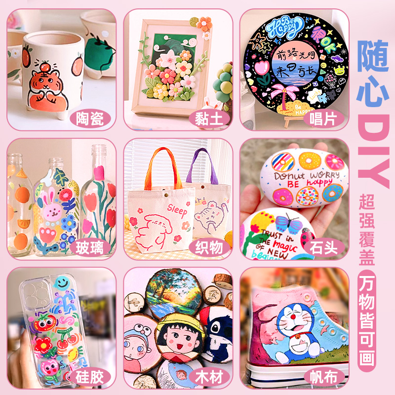 丙烯马克笔儿童防水不透色叠色彩笔学生美术专用可水洗小学生笔芯水性比心水彩笔绘画本手绘彩色炳稀画笔