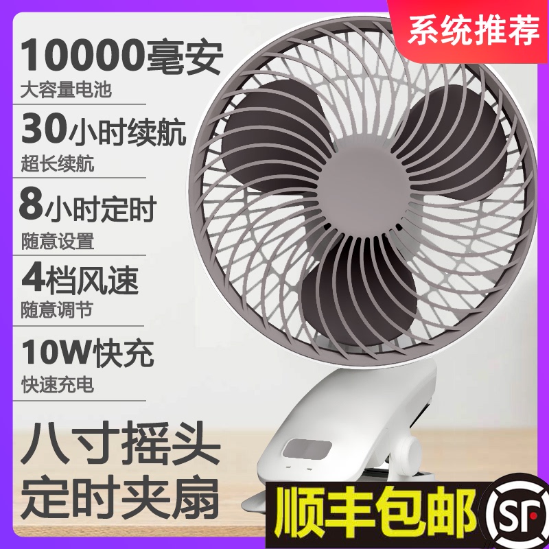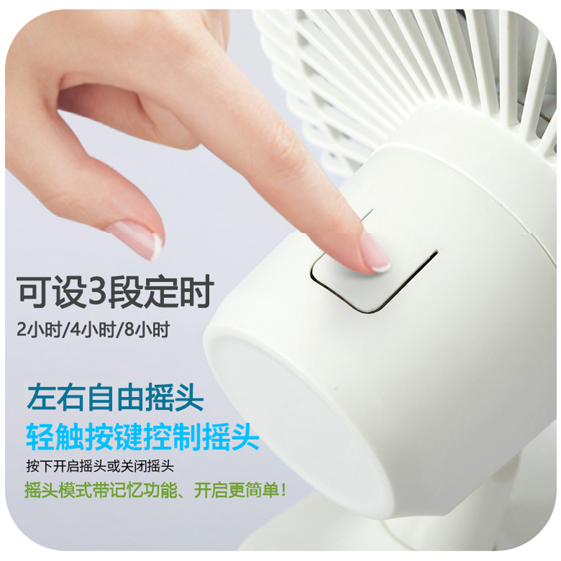 8寸夹子风扇静音婴儿车床头定z时摇头夹扇N小型学生宿舍充电风扇
