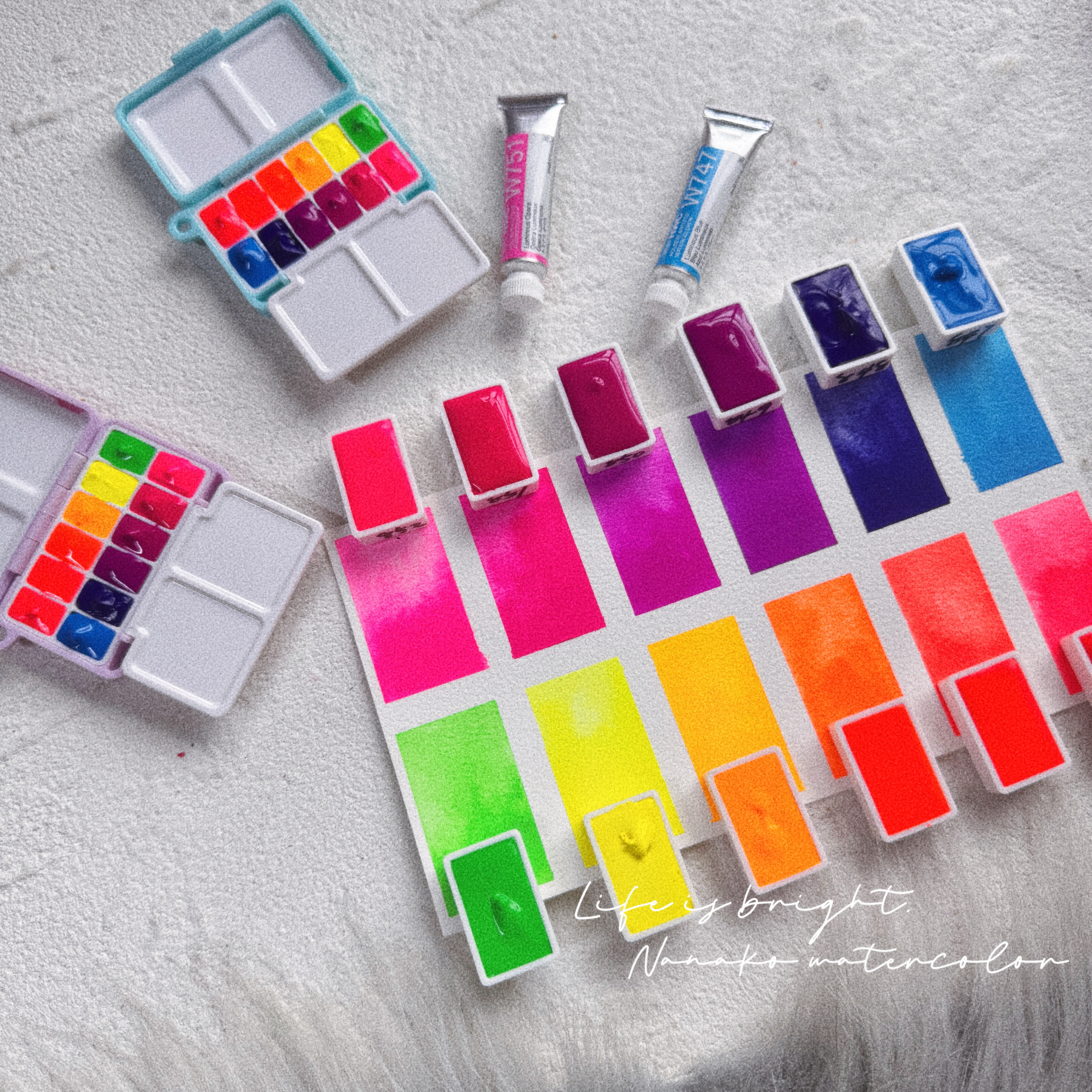 日本荷尔拜因沉淀色分层色荧光色艺术家级透明水彩颜料套装