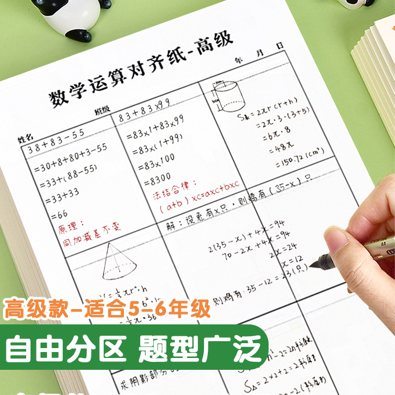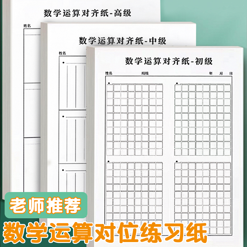 数学运算对齐纸小学生专用竖式加减法乘除法数位规范书写数学计算演算草稿本初级中级高级口算运算纸练习纸