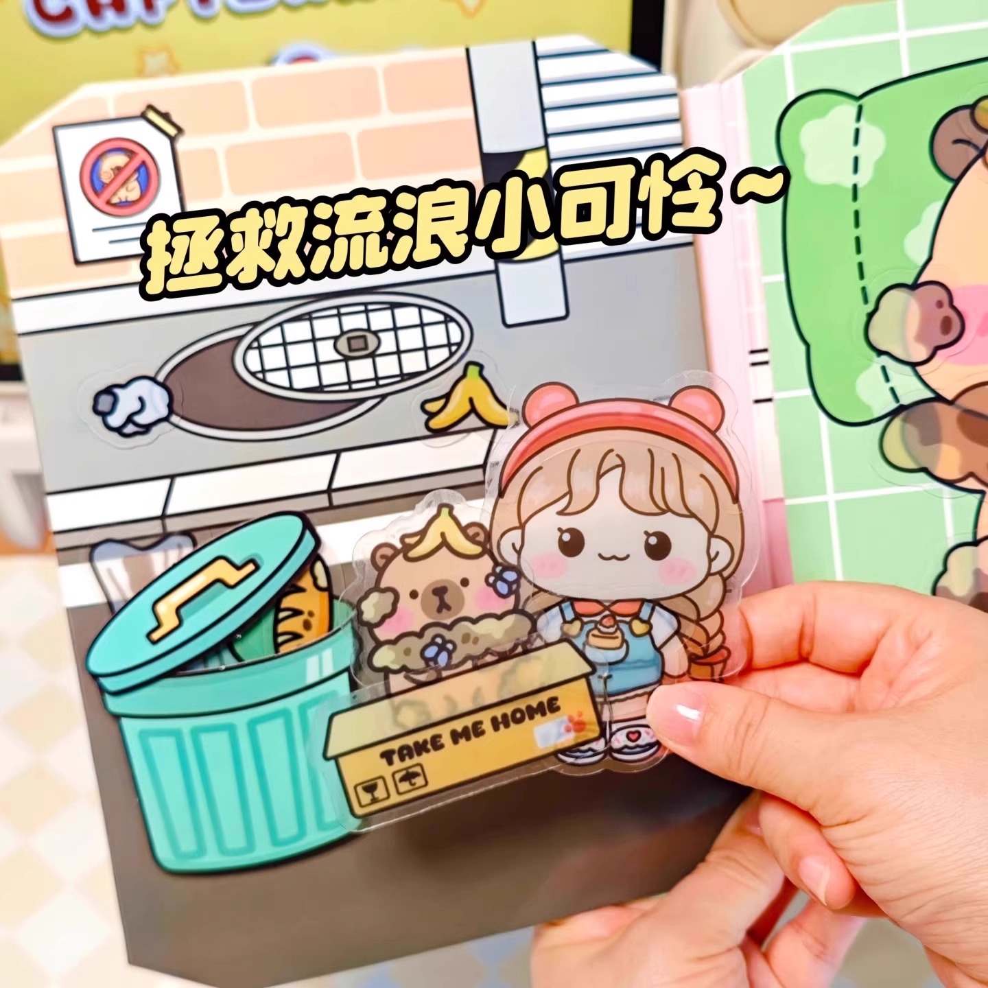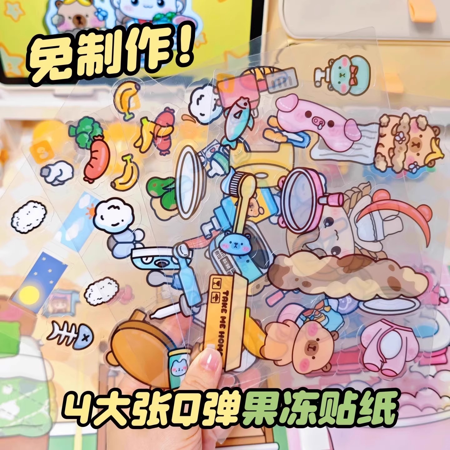 萌崽新款果冻贴纸安静书卡皮巴拉女孩免裁剪diy材料包儿童益智玩具
