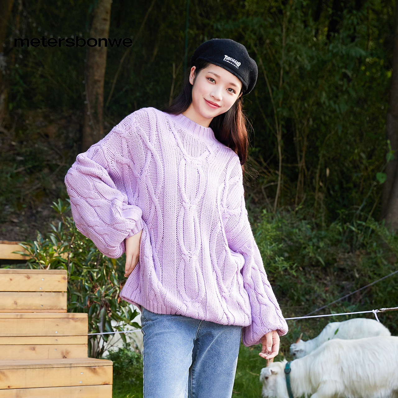美特斯邦威毛衣女款秋冬高领宽松纯色宽松舒适百搭长袖套头毛衫