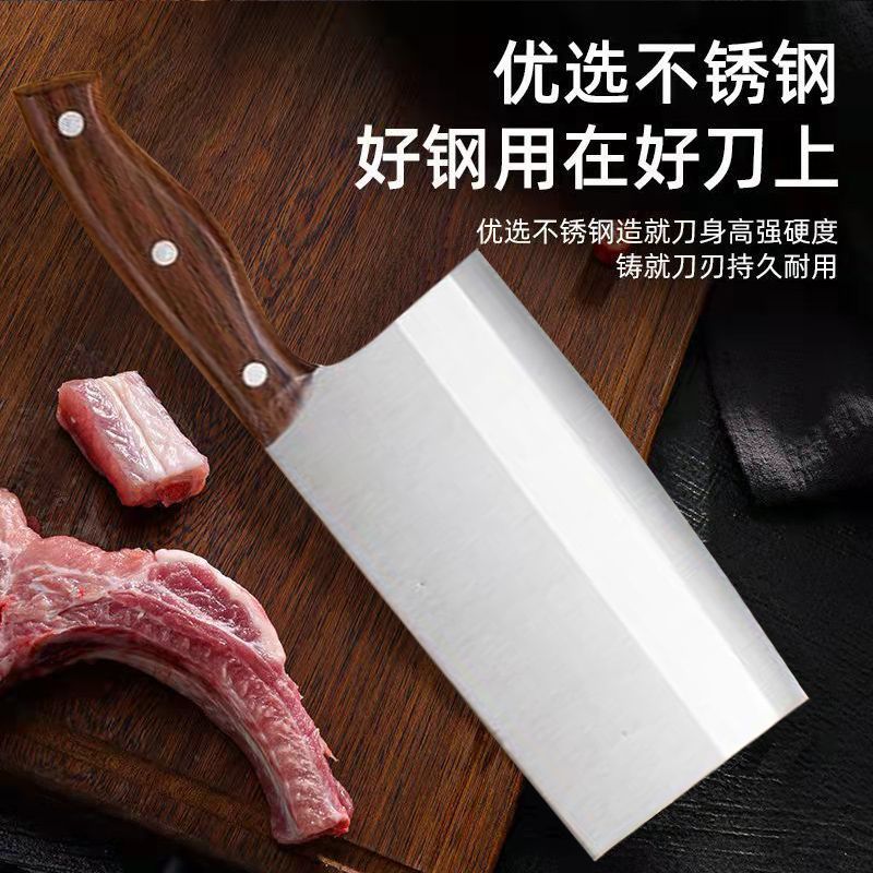 不锈钢菜刀中式实木手柄片刀切菜刀片刀锻打厨房厨刀刀具