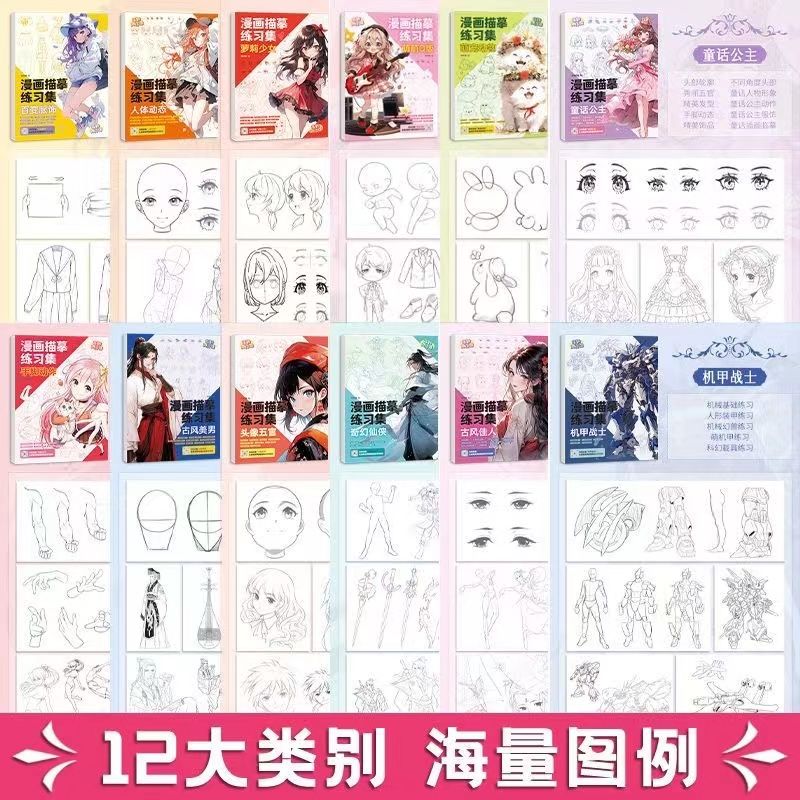 漫画描摹练习集 Q版动漫人体动态萌宠机甲绘画线稿临摹画册零基础