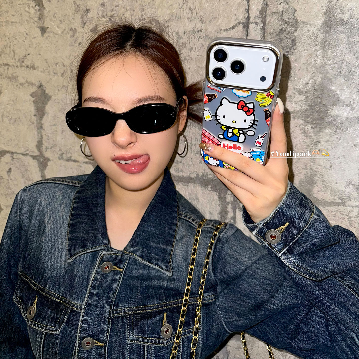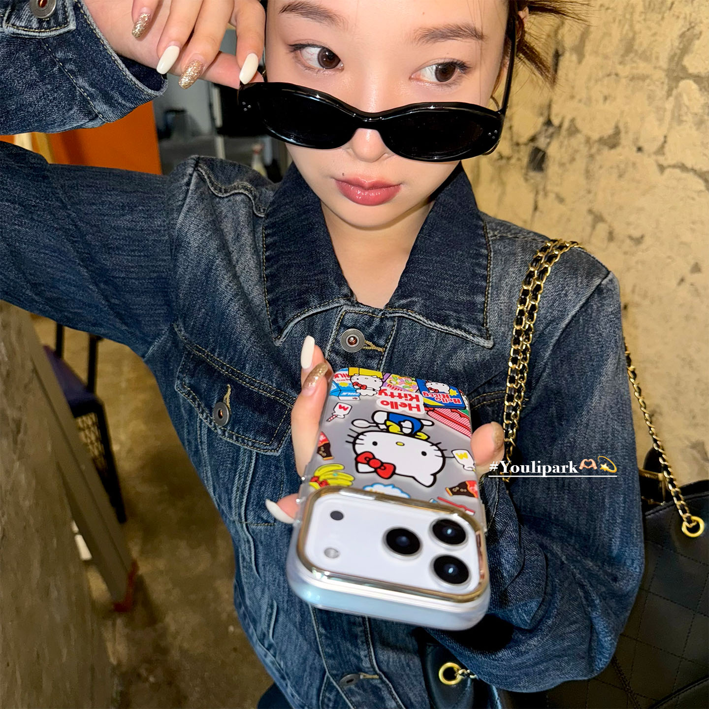 由里公园ins韩系可爱电镀牛奶猫咪插画17适用17pro苹果17ProMax手机壳iPhone16全包14新款16Promax保护套13女