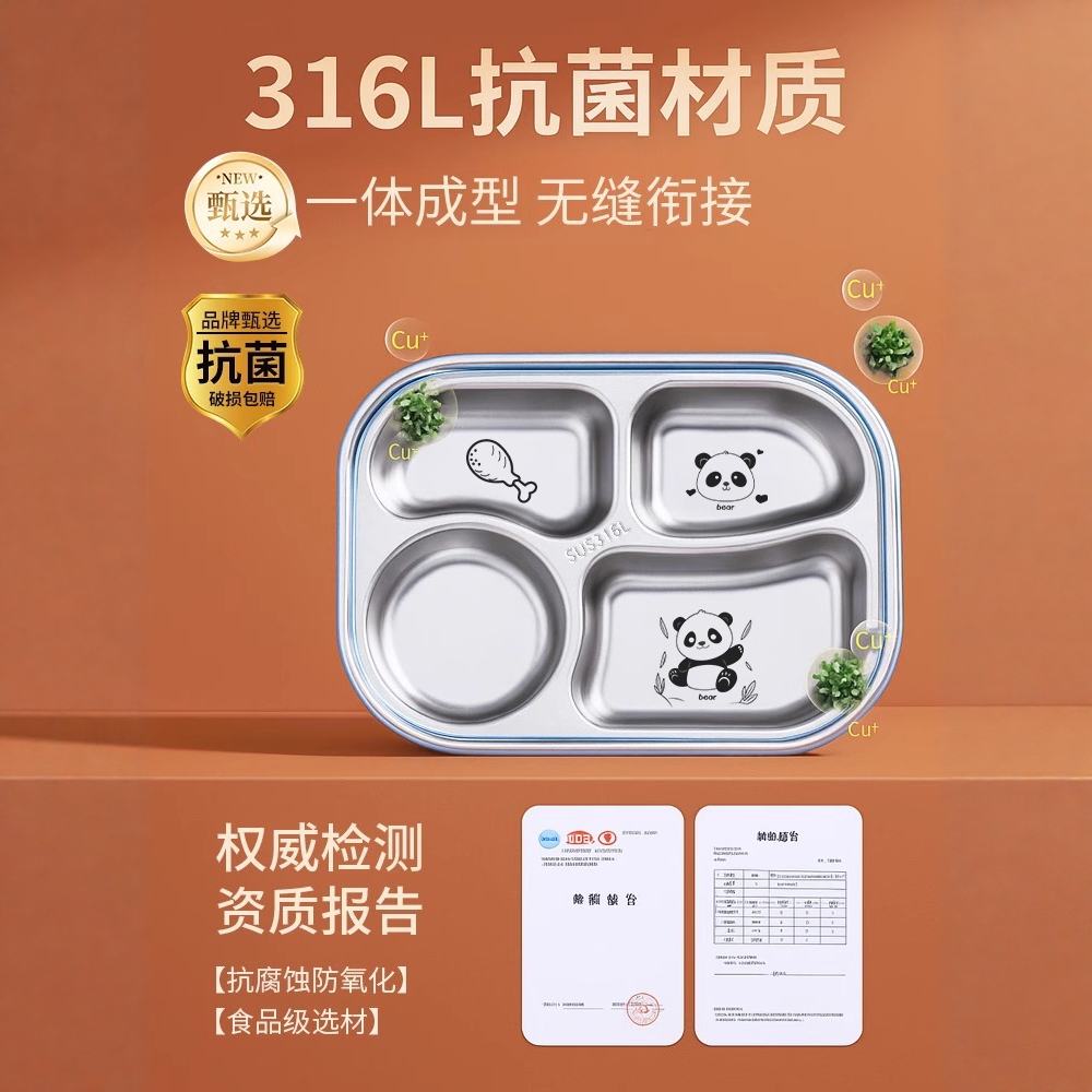 316不锈钢餐盘儿童分格宝宝专用餐具饭盒大人食堂打饭餐盒保温