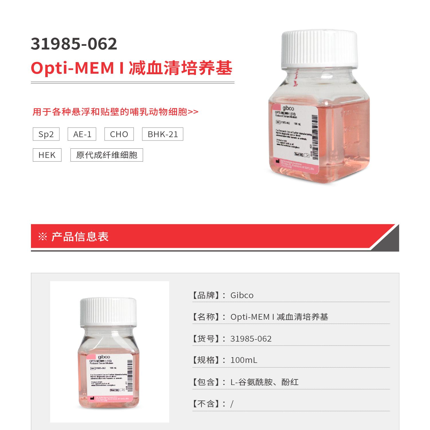 31985-062 Opti-MEM I 减血清培养基(含L-谷氨酰胺)