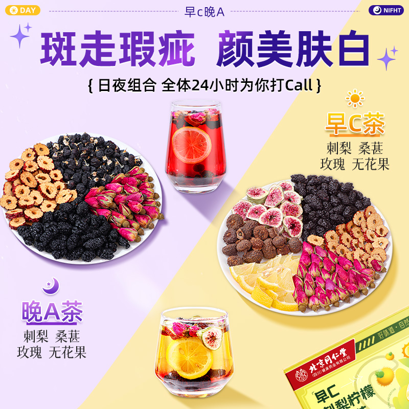 北京同仁堂早C晚A茶黑枸杞玫瑰组合美白养颜熬夜养生茶包茯苓红枣