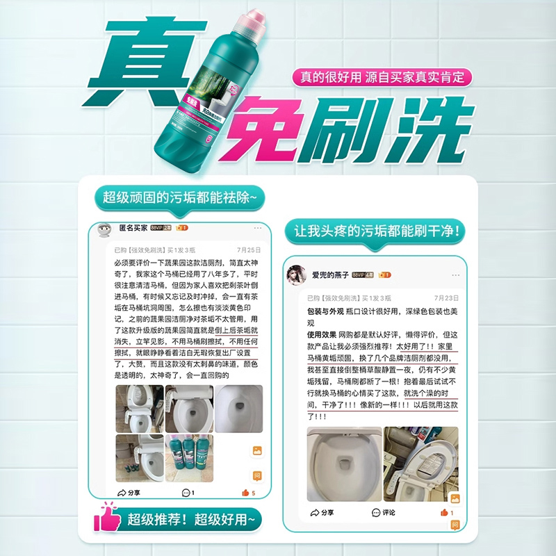 免刷洗洁厕灵厕所马桶清洁剂强力除垢除臭清香型液去污草酸强效
