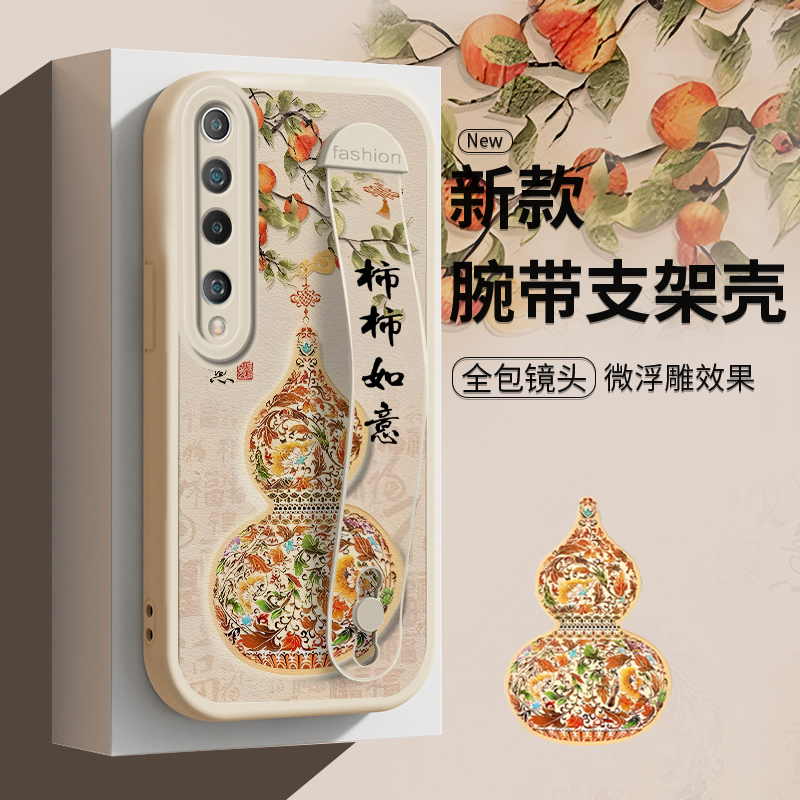 金丝宝葫芦适用小米10手机壳10s新款10pro小羊皮十青春版腕带10至尊版支架mi10全包防摔女高级艺术保护软套