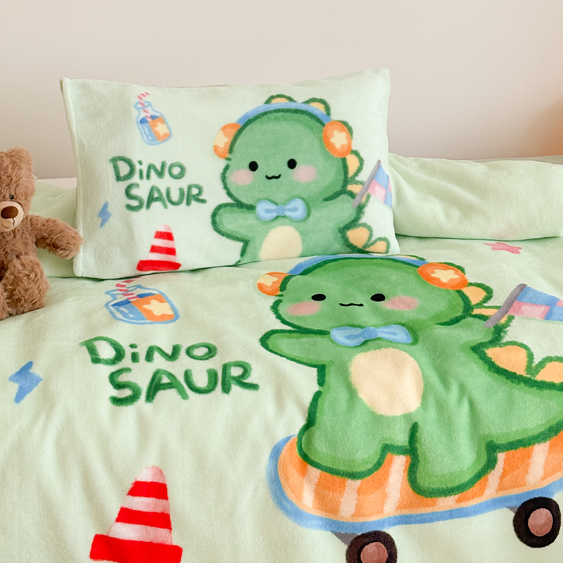 TeenieWeenie小熊牛奶绒四件套美拉德风珊瑚绒被套加绒床单三件套