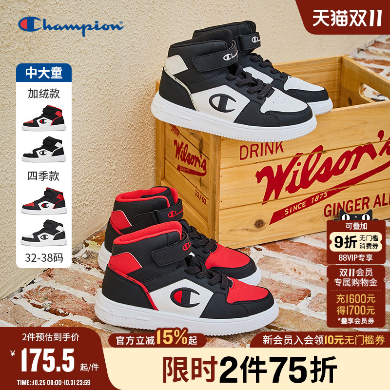 Champion冠军男女童25秋季新品潮流高帮休闲红色加绒运动篮球板鞋