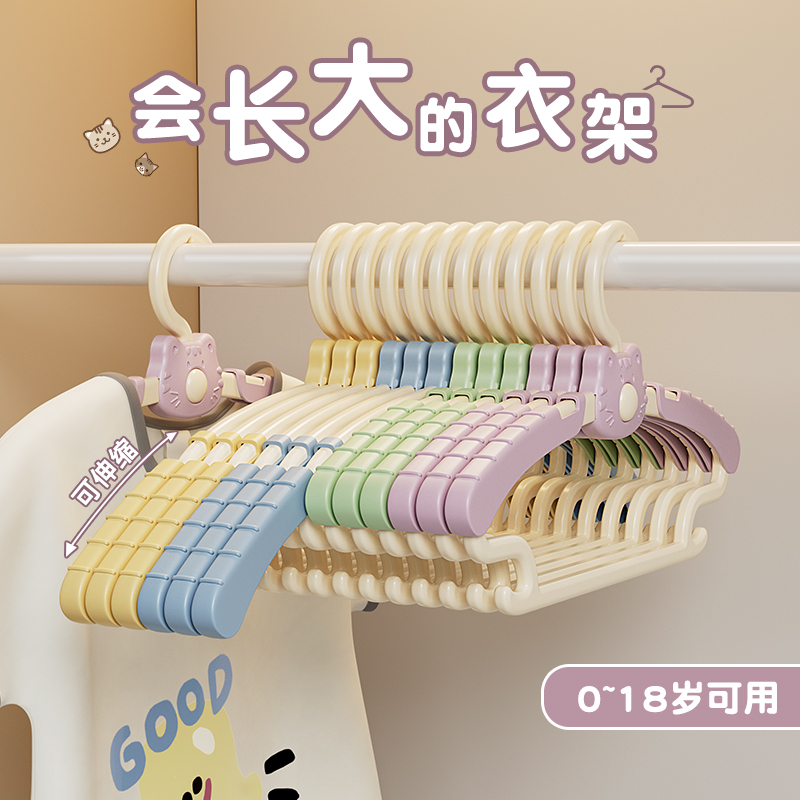 【20个装】儿童衣架婴幼儿宝宝可伸缩无痕家用挂衣晾衣架多规格