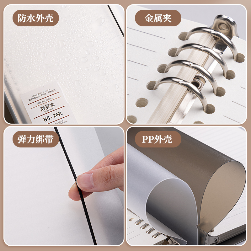 绑带不硌手活页本B5横线笔记本子A4活页方格本a5多规格可拆卸替芯加厚学生考研线圈错题本活页纸活页夹高中生