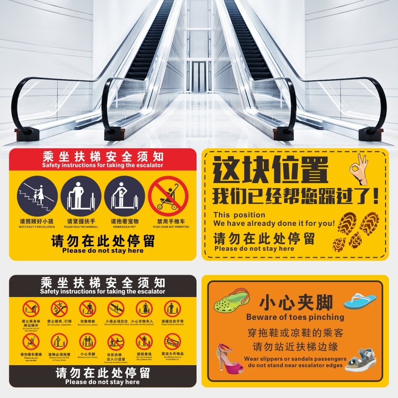 扶梯安全警示标识乘坐电梯安全须知标识牌自动扶梯提示牌商场超市电梯手扶梯注意事项紧握扶手禁止嬉戏贴纸