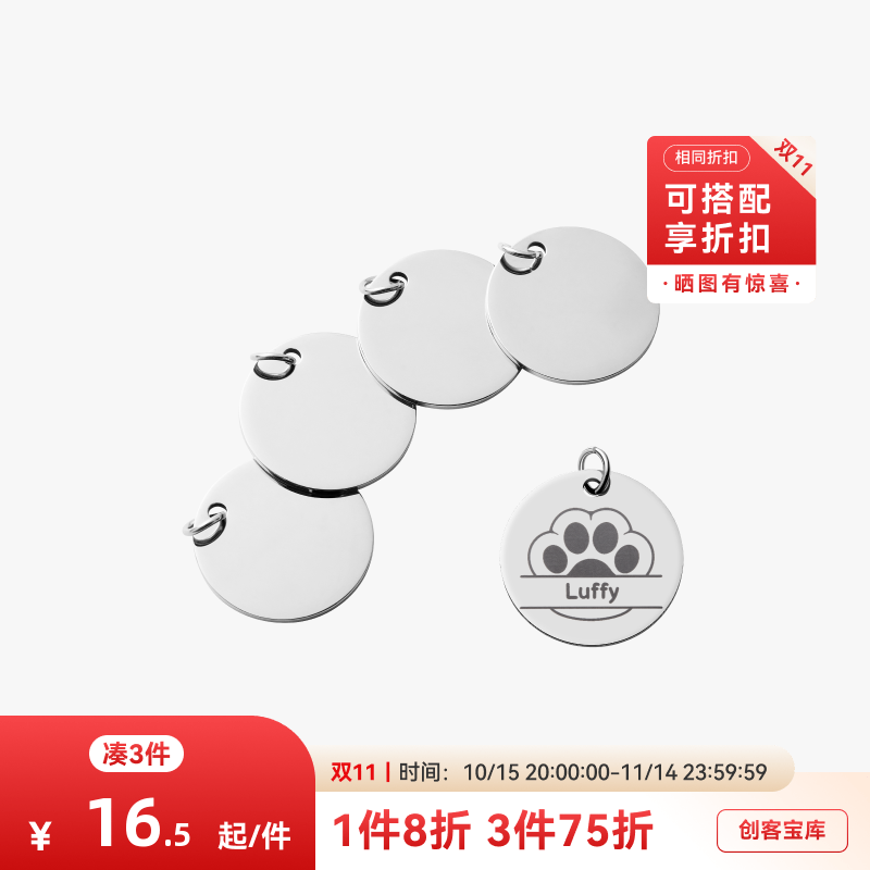 拓竹 圆形不锈钢吊牌(5个) 激光雕刻与切割 手工diy礼物宠物狗牌