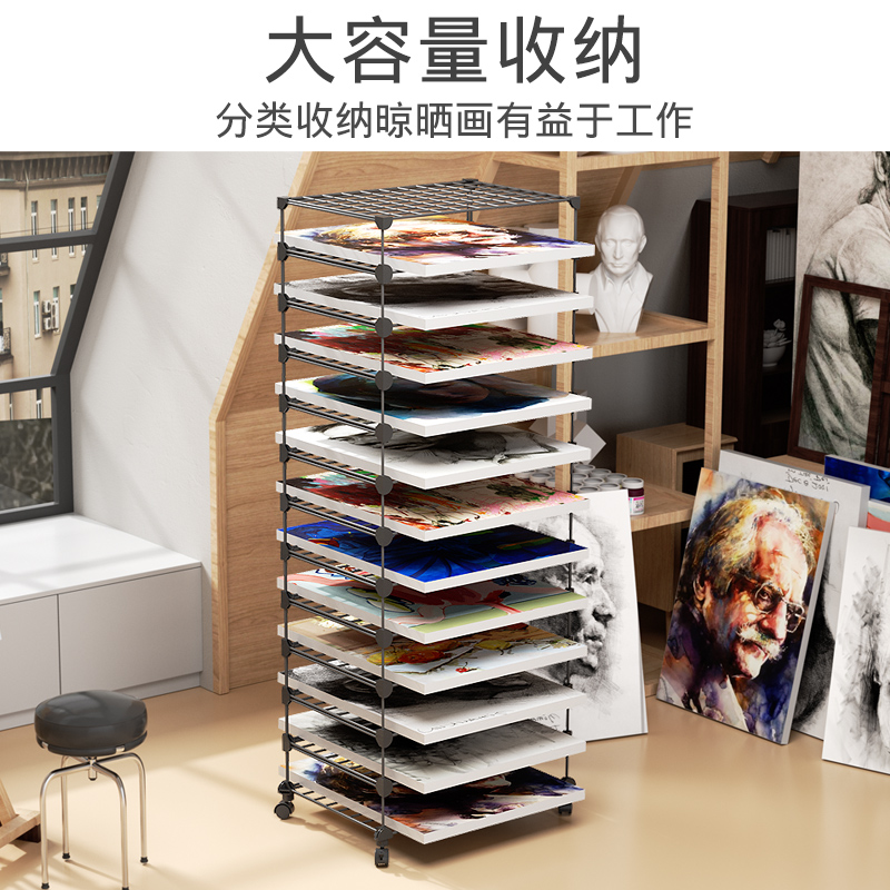 画架展示架带轮子落地可移动铁艺画室置物架美术室卡纸画具分层架