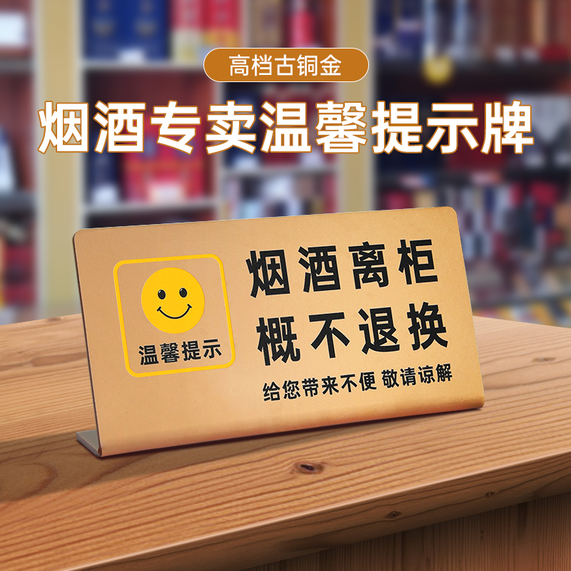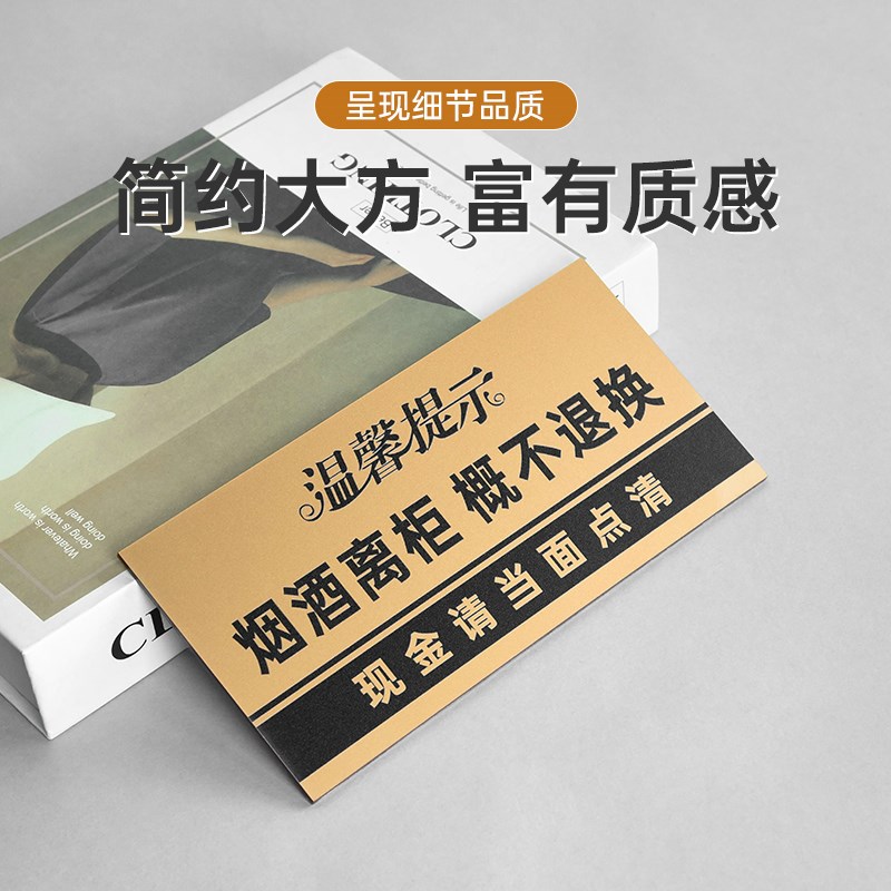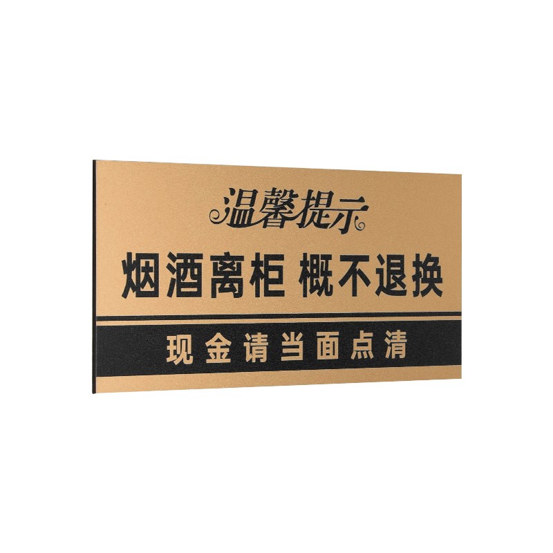 热销烟酒专卖前台离柜概不退换亚克力温馨提示牌定制钞票现金当场