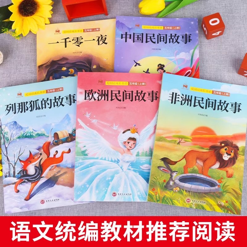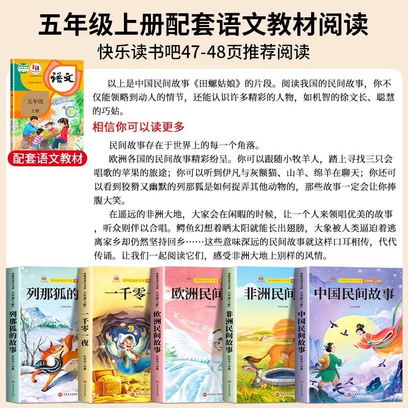 中国民间故事五年级上册快乐读书吧必读课外书籍欧非洲正版小学生田螺姑娘老师推荐经典书目列那狐狸的故事5上人教版阅读书