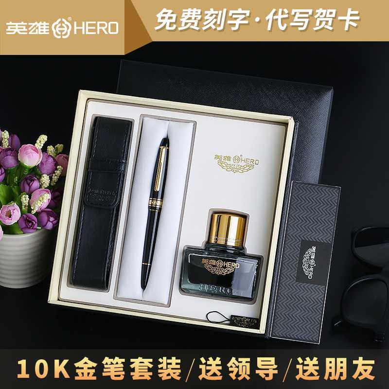 新款直销hero 10k金笔墨水礼盒套装刻字英雄2062商务钢笔节庆公关