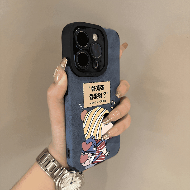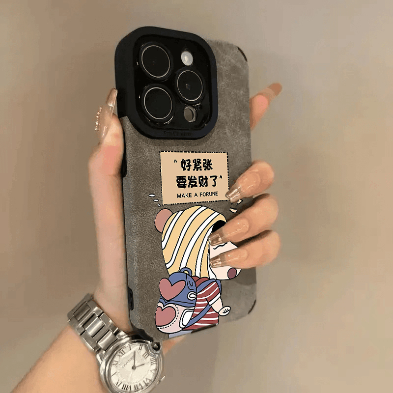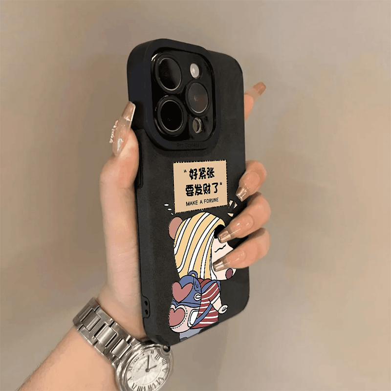 好紧张要发财了小新适用iPhone16手机壳苹果15promax翻毛皮14高级感11全包12防摔13男女款xs小众创意保护套xr