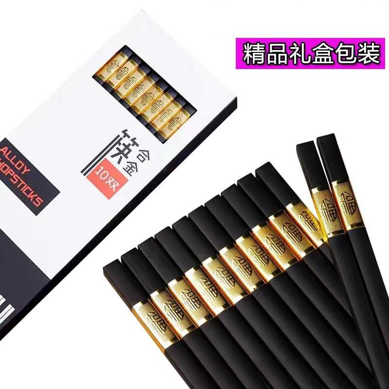 新款直销【27cm盒装】家用筷子防滑防霉耐高温不变形网红合金筷子