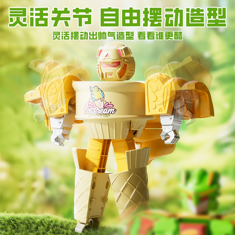 汉堡薯条变形机器人玩具男孩子可乐汽水金刚机甲儿童益智战士变身