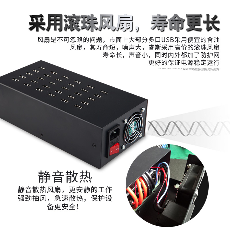 睿斯usb多口充电器多孔插头桌面20/40接口10手机充电桩工作室快充安卓适用苹果集线器大功率多功能排插座电源