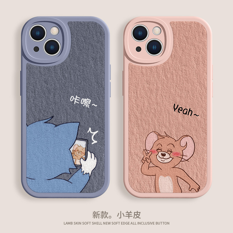 适用苹果16猫和老鼠情侣手机壳iPhone14新款15promax趣味13mini卡通12可爱xr小羊皮xsmax男xs女款11套软壳7/8