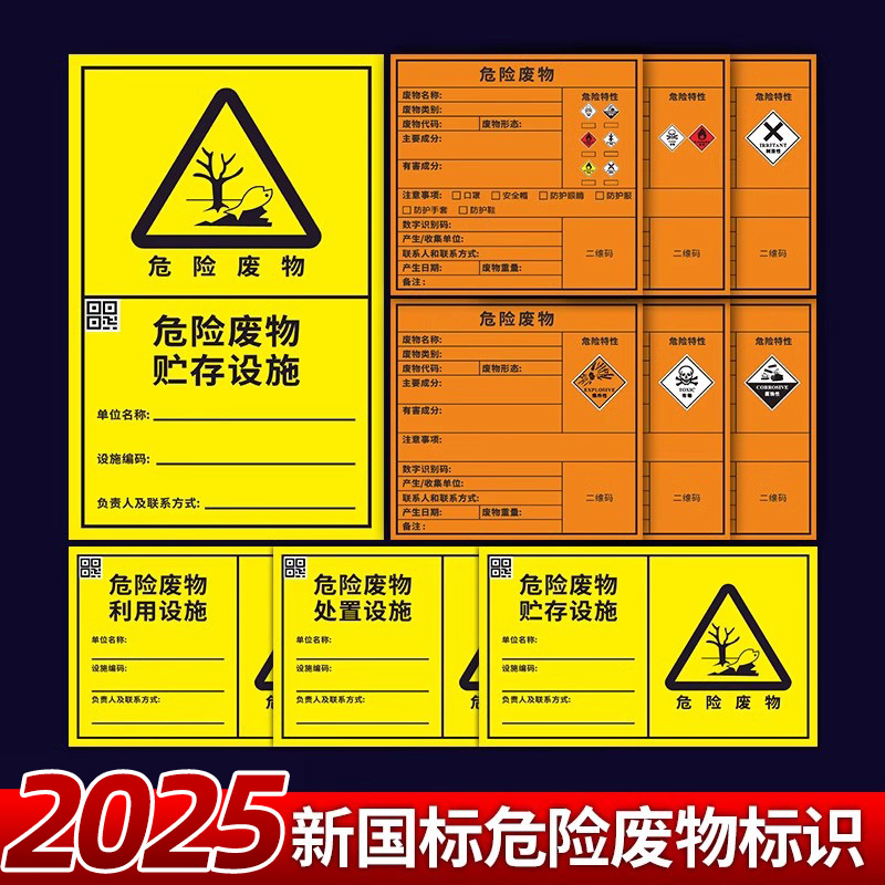 2025危废标识牌25新国标危险废物新版标签不干胶环保贴纸有毒易燃爆炸危废贮存场所设备设施化学品标志标牌