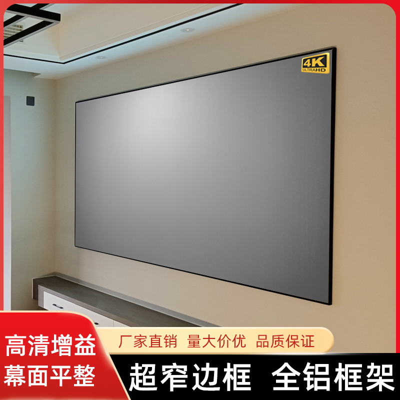 型梦抗光投影幕布家用画框j屏幕投影仪布幕100寸长焦机窄边灰黑激