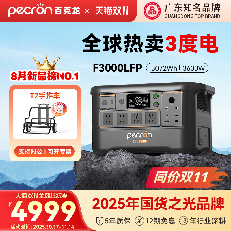 【3度电新旗舰】百克龙户外移动电源3度电F3000LFP大容量磷酸铁锂3600W大功率220V快充UPS便携自驾露营施工