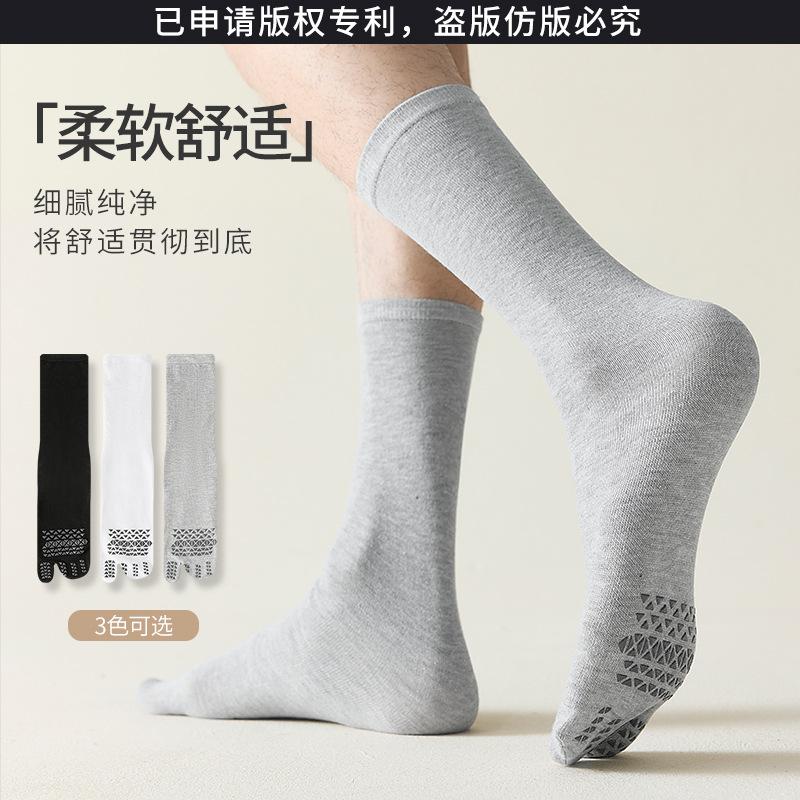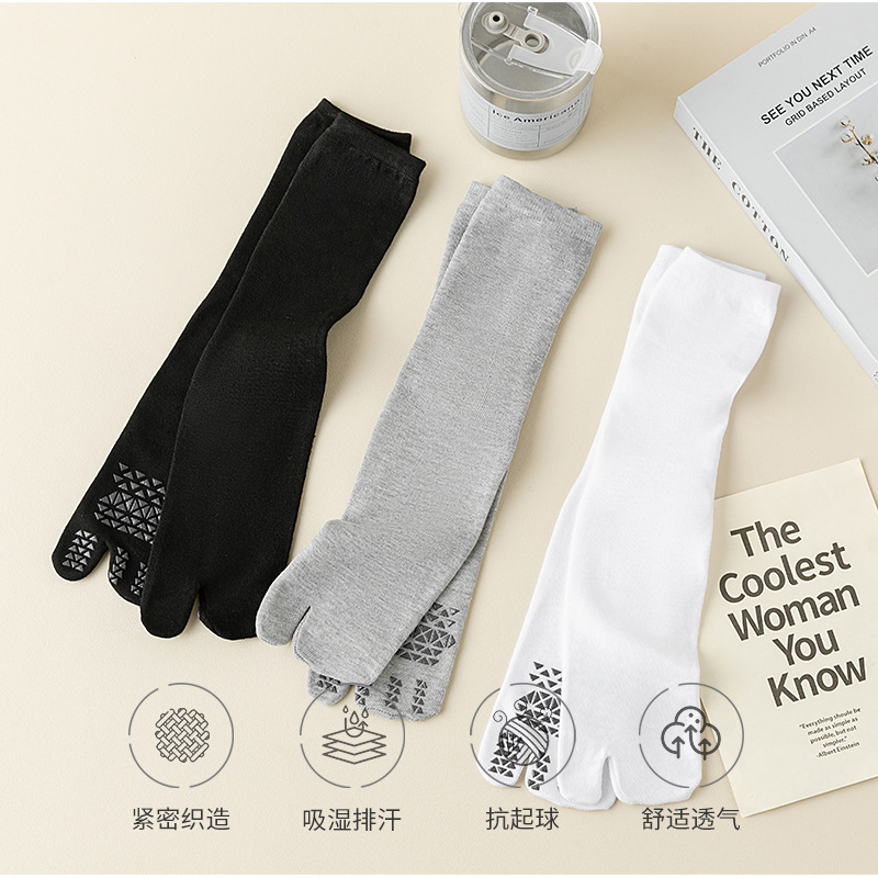 二指袜子男小腿袜男士袜底点胶防滑男袜白色拇指分趾猪蹄鞋羊蹄袜