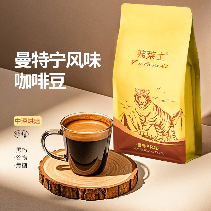 弗莱士曼特宁咖啡豆香浓意大利美式咖啡手冲现磨黑咖啡粉454g意式