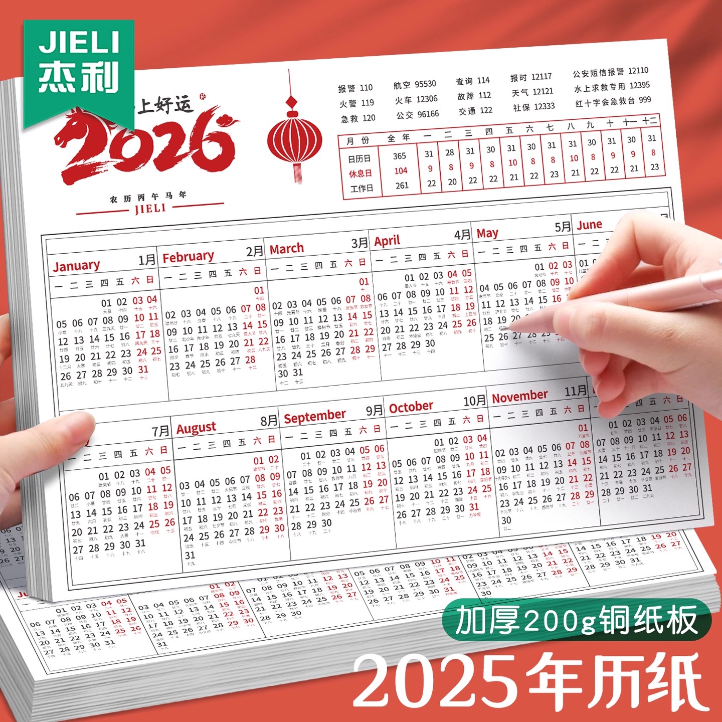 日历纸2026年整年挂历纸贴墙简约桌面办公年历纸单张台历纸学生学习日程标记防忘计划表365天记事日历表定制