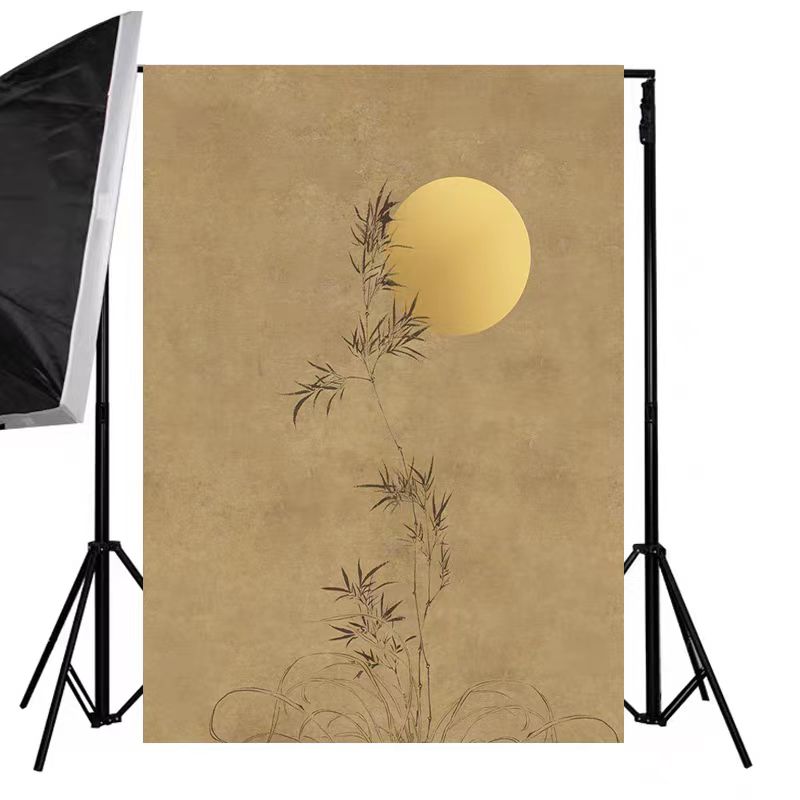 明月牡丹古装工笔背景布新中式古装旗袍婚纱影楼摄影直播数码喷绘