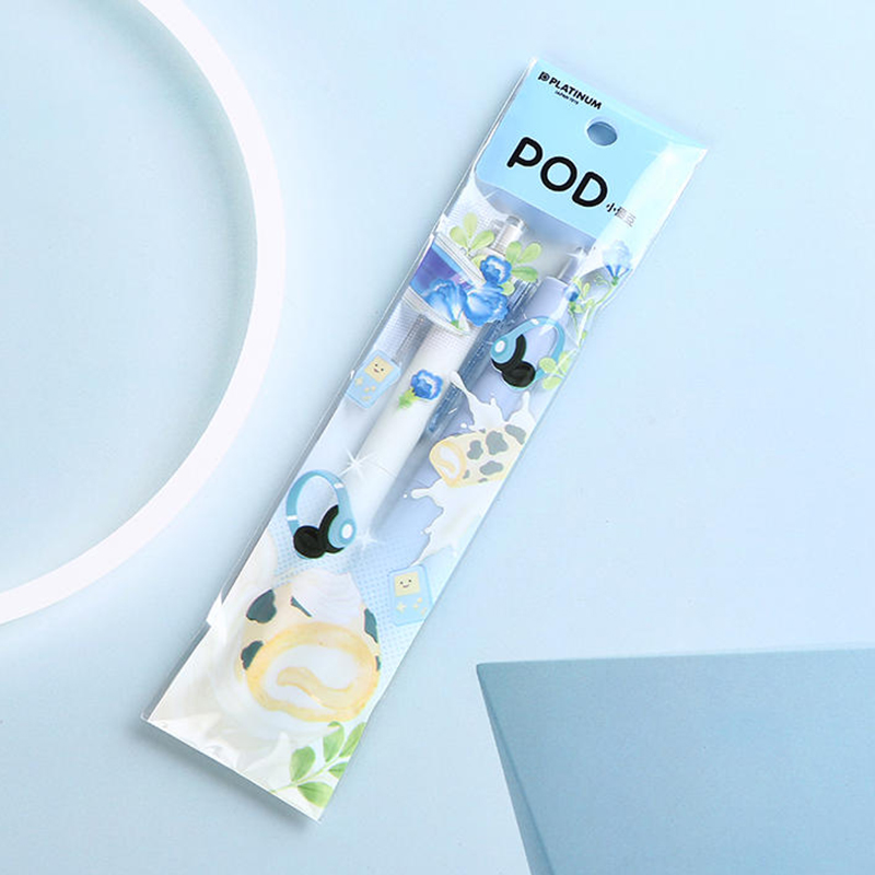 日本PLATINUM白金POD5洋风奶茶店小爱豆中性笔针管头按动水笔学生考试刷题速干黑笔马卡龙色奶茶系办公签字笔