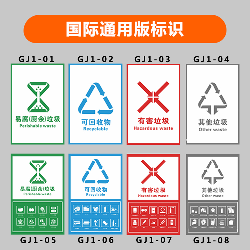 新款国标北京上海杭州广州苏州垃圾分类垃圾分类标识贴纸垃圾桶可有害厨余其他垃圾标示指示宣传标语海报墙贴
