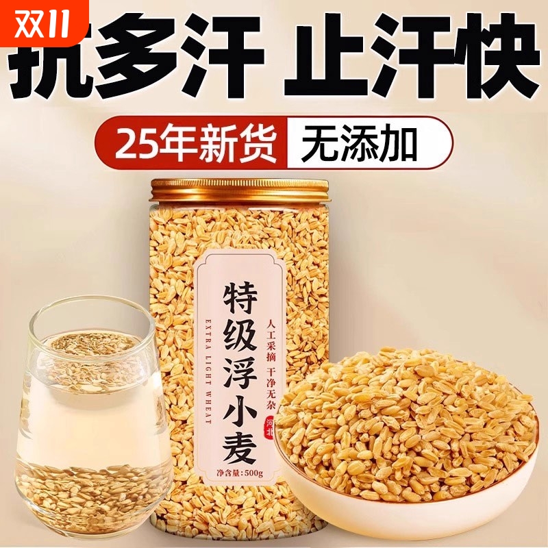 正宗浮小麦轻瘪中药材止汗茶旗舰店甘草大枣泡水乌梅黄芪酸枣仁