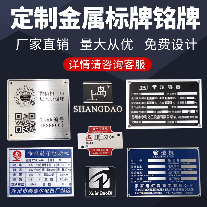 金属铭牌定制定做不锈钢铜铝合金铁制面板电机机床械商标logo丝网