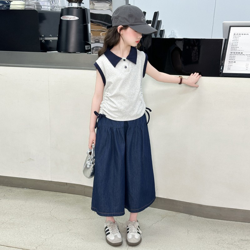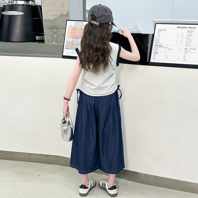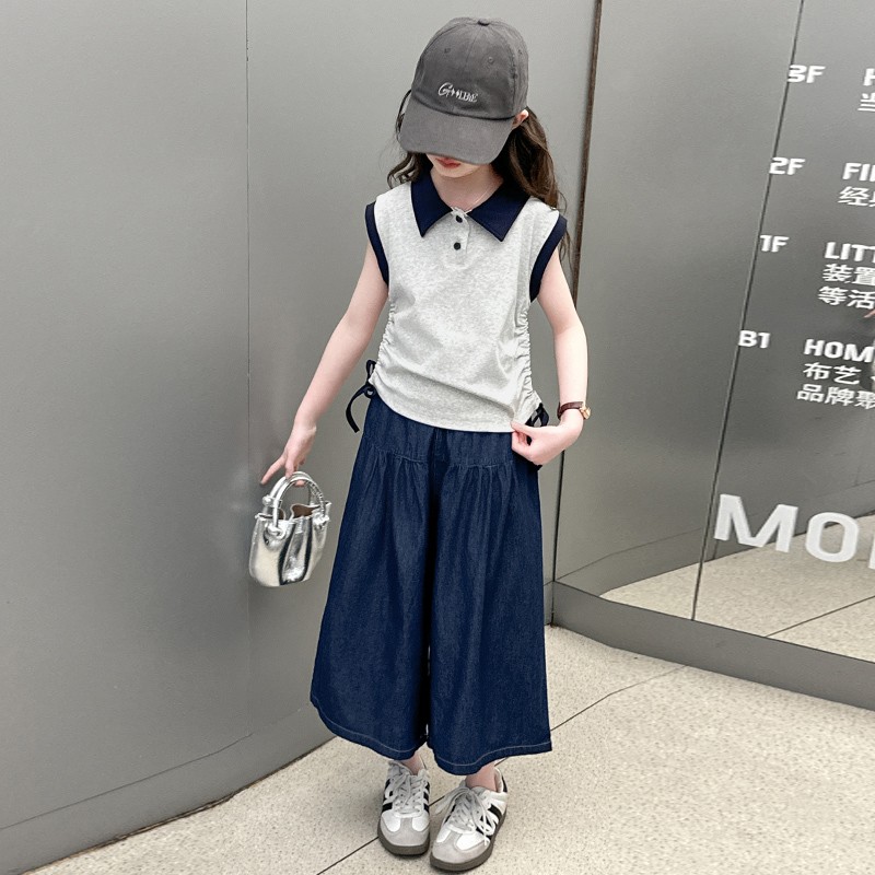 女童夏装无袖上衣阔腿裤两件套2025新款女还洋气时髦休闲运动套装